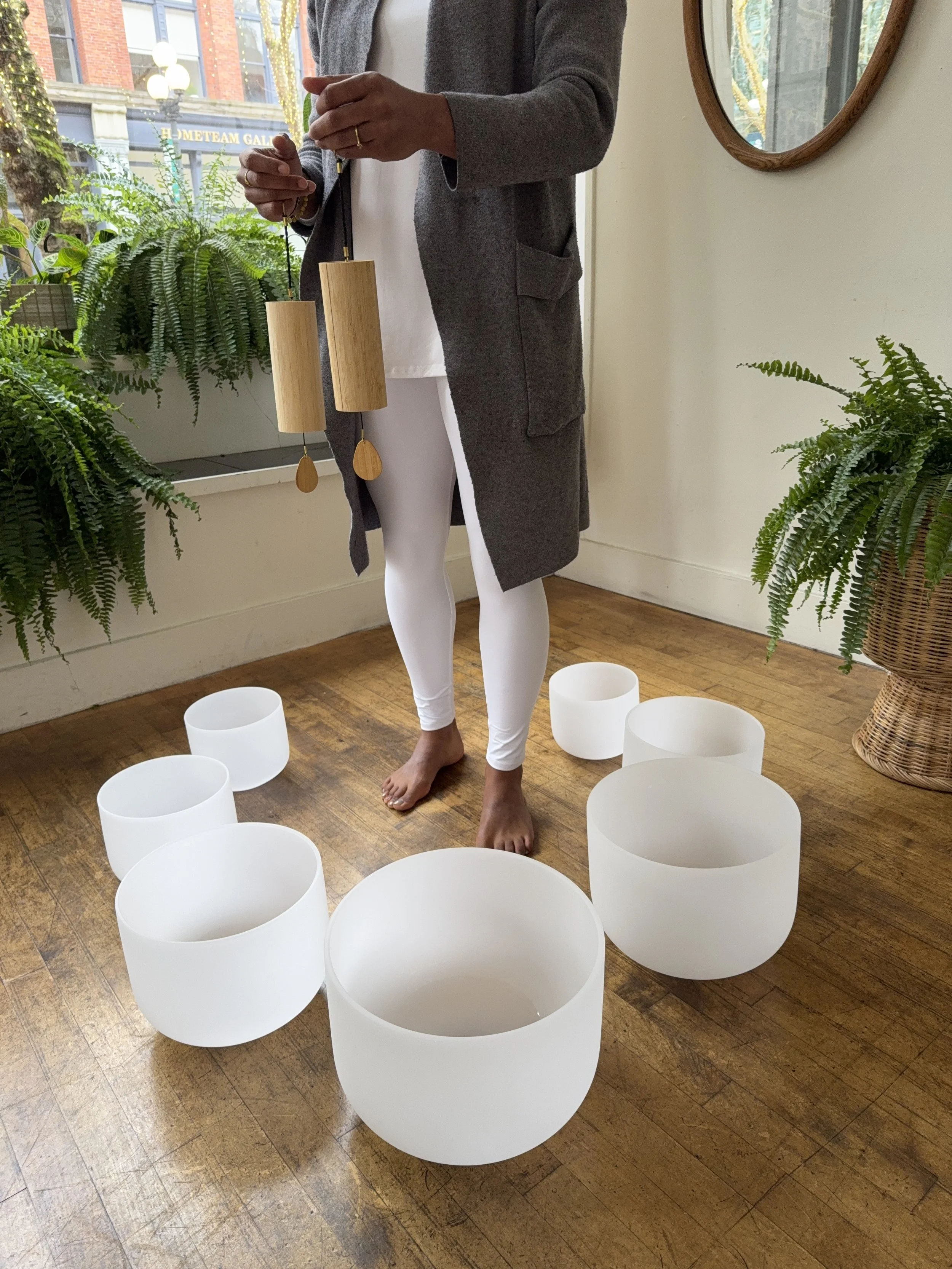 Instruments: Crystal sound bowls and koshi chimes to embrace natural elements.